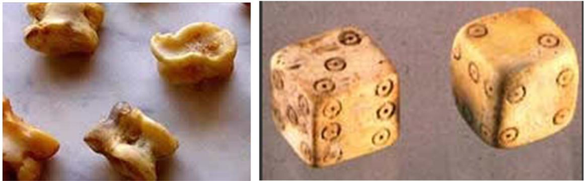 A história dos dados não começa com cubos, mas com ossos. Especificamente, os astrágalos, ossos do tornozelo de ovelhas, cabras e outros animais ungulados. Devido à sua forma peculiar, com quatro lados distintos e fáceis de diferenciar, eles se tornaram os primeiros geradores de aleatoriedade da humanidade.